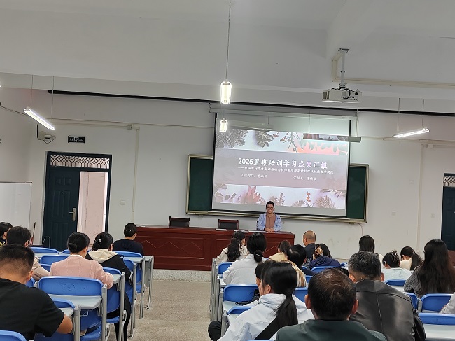 2025年10月15日,语文教师谢晓敏在部门政治学习会议上,将暑期学习培训情况作了总结汇报。汇报围绕培训基本情况、核心内容、考核与应用、反思与展望等五个部分展开,将学习过程和学习成果进行了充分地分享,在教学理念与实践方法上收获颇丰。谢晓敏说,此次培训不仅填补了教学知识盲区,更让她明确了教学改进方向;培训期间,与来自各地的教师组队,展开深度交流,碰撞教学智慧,深受启发;此外,围绕统编教材新课标解读、教师素质提高等主题,各位专家展示了先进教学理念和教学方法,让年轻人受益匪浅。