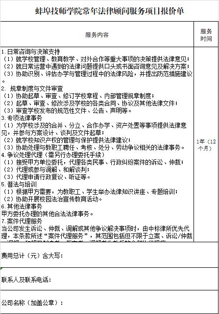 蚌埠技师学院常年法律顾问服务项目采购公告