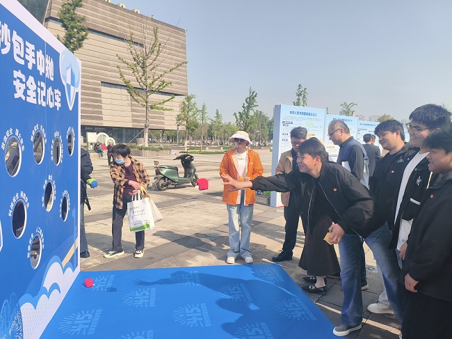 活动现场,氛围庄重而热烈。团员们怀着崇敬与求知的心情,有序参观各个展区,认真聆听工作人员的细致讲解,不时驻足凝视展板上的图文资料、典型案例和数据成果,主动交流探讨心中的疑问与感悟。在互动体验区,团员们积极参与国家安全知识问答、安全标语投掷沙包等特色环节,在沉浸式体验中深化对国家安全知识的理解,进一步掌握防范化解安全风险的基本方法;工作人员还向团员们发放宣传资料,细致解答大家关于国家安全法律法规、公民义务等方面的疑问,引导团员们深刻认识到,维护国家安全不仅是国家的责任,更是每个公民、每名团员的神圣义务。