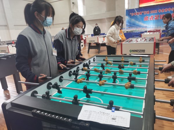 12月11日,“少年蚌埠”行动2022年全市中小学生体育联赛桌式足球比赛在 在蚌山小学教育集团黄山校区举行。我校有18名学生参加了高中组比赛,比赛项目分为男子双打,女子双打、混双和团体项目。