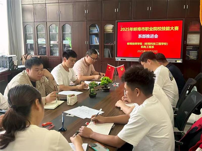 为全力备战2025年蚌埠市职业院校技能大赛,保障竞赛工作高效有序,力争再创佳绩,机电工程系于10月10日 下午在机电系办公室召开赛前工作推进会。会议由机电系副主任刘波主持,全体竞赛项目指导教师参会。
