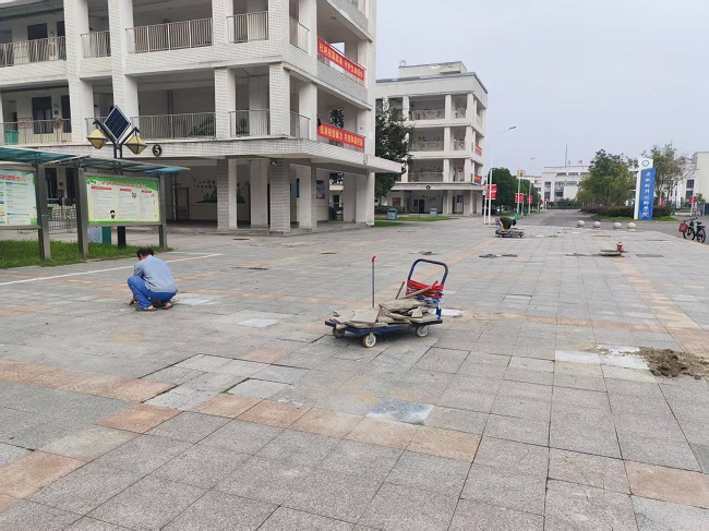 为高效推进各项工作,总务处提前制定了周密的施工方案,明确时间节点与质量标准。针对教学区主干道及部分广场地砖因长期使用出现的破损、松动问题,维修团队开展了系统性排查与标记。施工过程中,工人们细致起砖、清理基层,重新铺设并夯实新砖,力求每一处砖面平整牢固、缝隙均匀,既消除了安全隐患,也使校园道路焕发新颜。