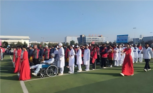 2025年11月5日,蚌埠技师学院2025秋季运动会胜利开幕。在运动会开幕式上,成教处老师一身急救服,火红如霞;医护系老师身着护士服,洁白如云。成教-医护方阵形成一道靓丽风景线。当成教-医护方阵踏着《义勇军进行曲》走过运动会主席台前时,迎来阵阵掌声和欢呼。