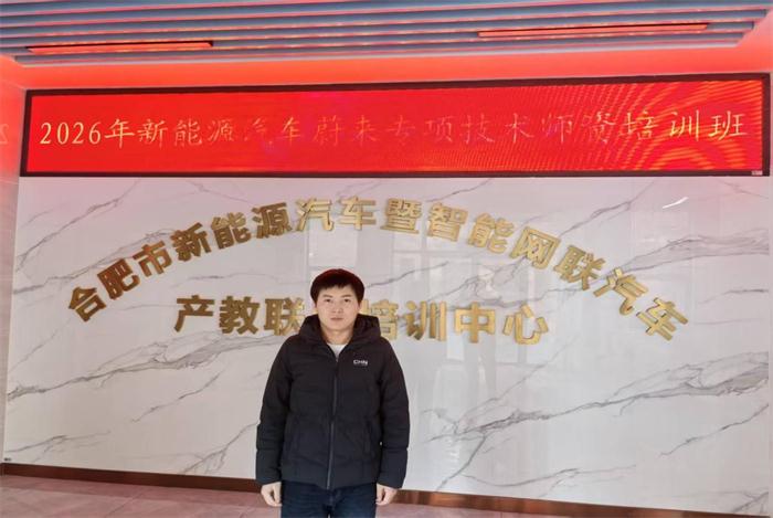 为紧跟新能源汽车技术迭代步伐,深化产教育人机制。2026年1月5日-1月8日,机电工程系选派骨干教师崔伟参加了由安徽省职业与成人教育协会主办、蔚来汽车科技(安徽)有限公司等单位承办的“新能源汽车蔚来专项技术”师资培训。