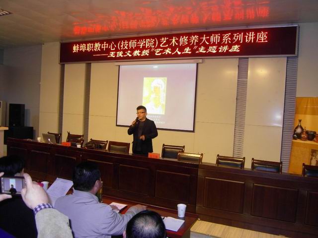 王俊文教授近2个小时的讲座精彩生动。他用一幅幅珍贵的图片资料展示了自己精美无比的创作成就和融入其中的快乐人生;他用自己亲力亲为的拼搏故事激励同学们增强自信,规划好人生之路,并为之努力做得最好;他用自己的人生境遇和感悟告诉同学们要始终常怀感恩之心,在感恩中奋斗和体验快乐。大师精彩的讲座,不仅开阔了师生们的艺术视野,也提升了师生们的人生境界。师生们深受感染,获益匪浅,全场凝神聆听,不时报以热烈掌声。5月13日晚,市电视台新闻联播节目报道了王俊文教授的精彩讲座。(刘兴联)